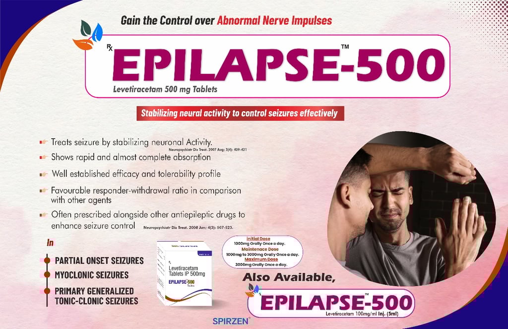EPILAPSE-500 is a prescription-based antiepileptic formulation containing Levetiracetam 500 mg, designed to help manage various types of seizures. By stabilizing neuronal activity, it effectively reduces the frequency and severity of episodes, allowing patients to regain confidence in their daily lives.