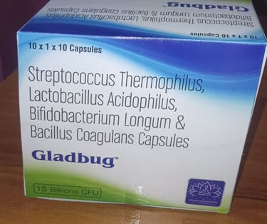 GLADBUG is a synergistic pre-probiotic formulation containing 15 Billion CFUs of beneficial bacteria. Specifically designed to support digestive health and the gut-brain axis, GLADBUG helps balance your intestinal flora, potentially improving mood, immunity, and overall well-being. By restoring healthy gut microbiota, it aims to reduce gastrointestinal discomfort and promote better cognitive function through the gut-brain connection.