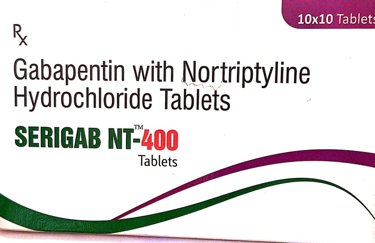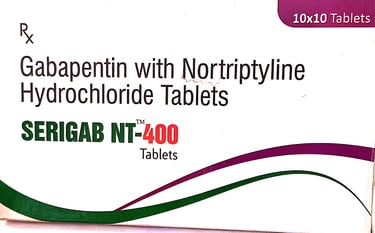 SERIGAB NT-400 is a carefully formulated combination of Gabapentin and Nortriptyline designed to address neuropathic pain at its core. By modulating nerve signals and enhancing neurotransmitter balance, this dual-action therapy helps alleviate pain, improve nerve function, and support better sleep and mood.