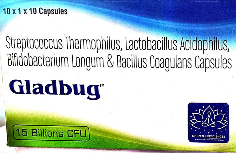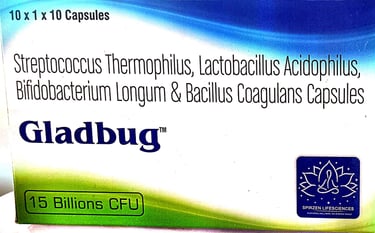 GLADBUG is a synergistic pre-probiotic formulation containing 15 Billion CFUs of beneficial bacteria. Specifically designed to support digestive health and the gut-brain axis, GLADBUG helps balance your intestinal flora, potentially improving mood, immunity, and overall well-being. By restoring healthy gut microbiota, it aims to reduce gastrointestinal discomfort and promote better cognitive function through the gut-brain connection.
