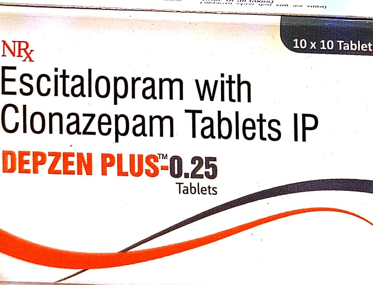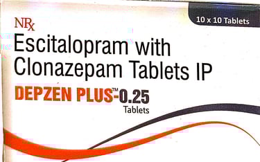 DEPZEN PLUS is a novel combination of Escitalopram, a highly efficacious Selective Serotonin Reuptake Inhibitor (SSRI), and Clonazepam, a potent benzodiazepine. This synergistic blend targets both the emotional and physiological aspects of anxiety and depression, offering rapid relief from panic disorders, comorbid depression, and generalized anxiety. By balancing serotonin levels and enhancing GABAergic transmission, DEPZEN PLUS helps you regain a sense of calm, improved mood, and better quality of life.