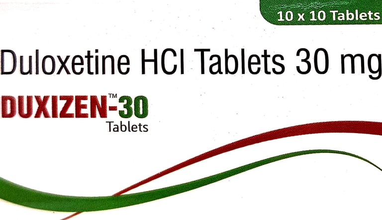 DUXIZEN-30 contains Duloxetine Hydrochloride 30 mg, a serotonin-norepinephrine reuptake inhibitor (SNRI) recognized for its effectiveness in managing major depressive disorder (MDD), generalized anxiety disorder (GAD), and certain forms of chronic pain such as diabetic neuropathy and fibromyalgia. By boosting key neurotransmitters (serotonin and norepinephrine), DUXIZEN-30 offers a comprehensive approach to improving both emotional and physical symptoms.