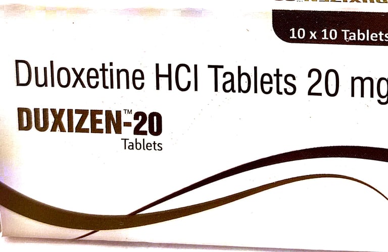 DUXIZEN-20 contains Duloxetine Hydrochloride 20 mg, a serotonin-norepinephrine reuptake inhibitor (SNRI) known for its effectiveness in managing major depressive disorder (MDD), generalized anxiety disorder (GAD), and certain forms of chronic pain such as diabetic neuropathy and fibromyalgia. By boosting key neurotransmitters (serotonin and norepinephrine), DUXIZEN-20 addresses both emotional and physical symptoms, offering a comprehensive approach to patient care.